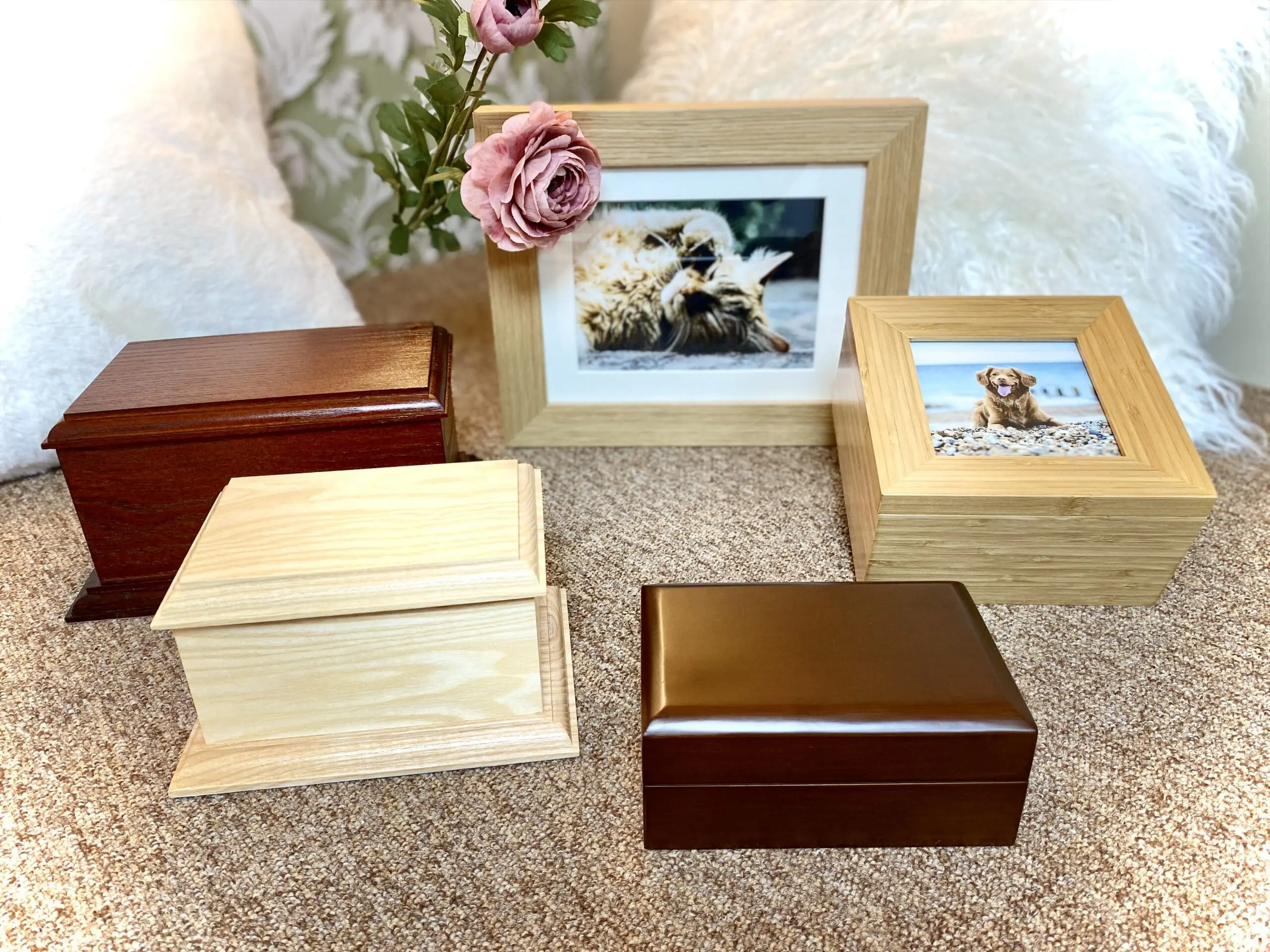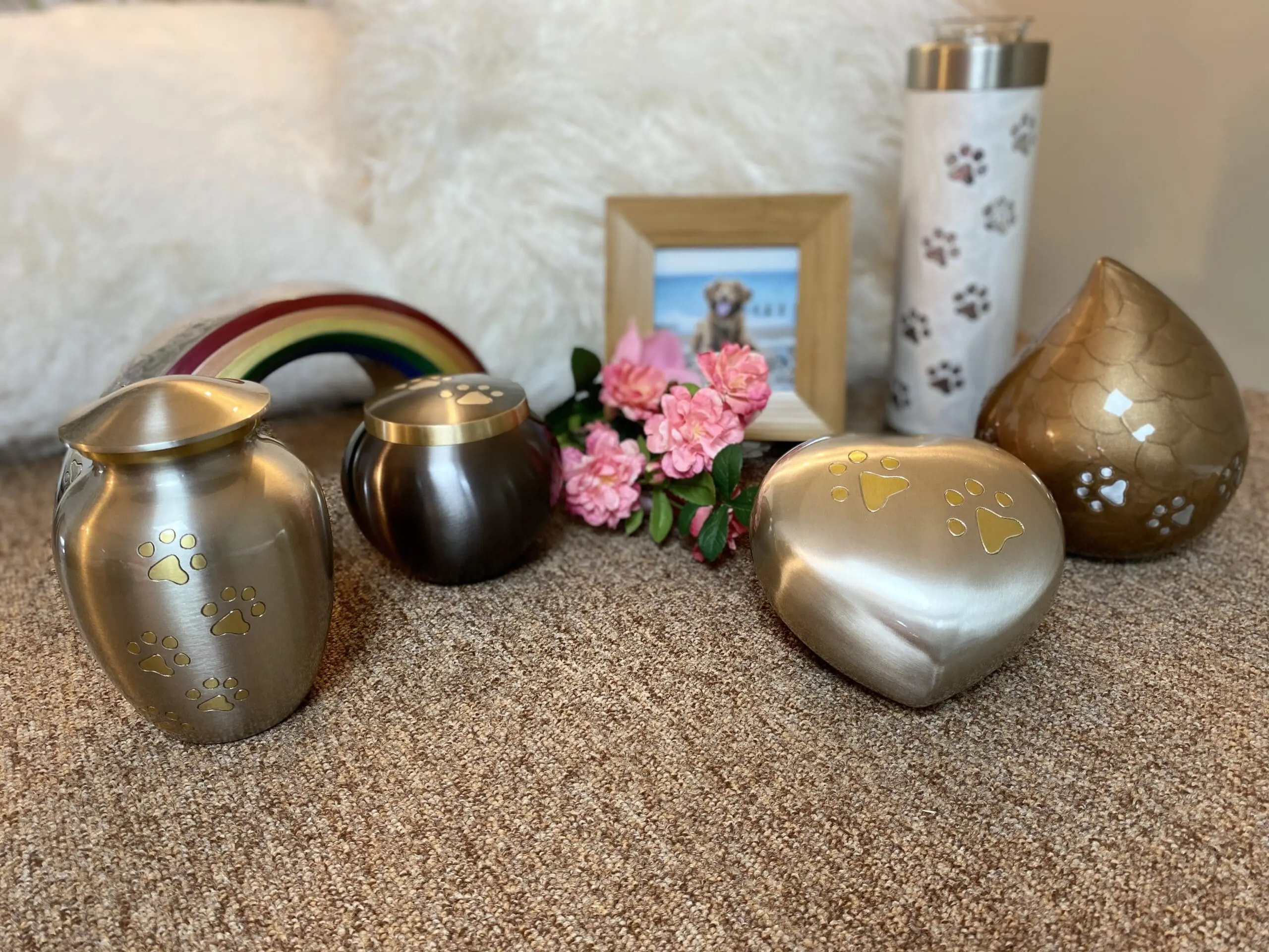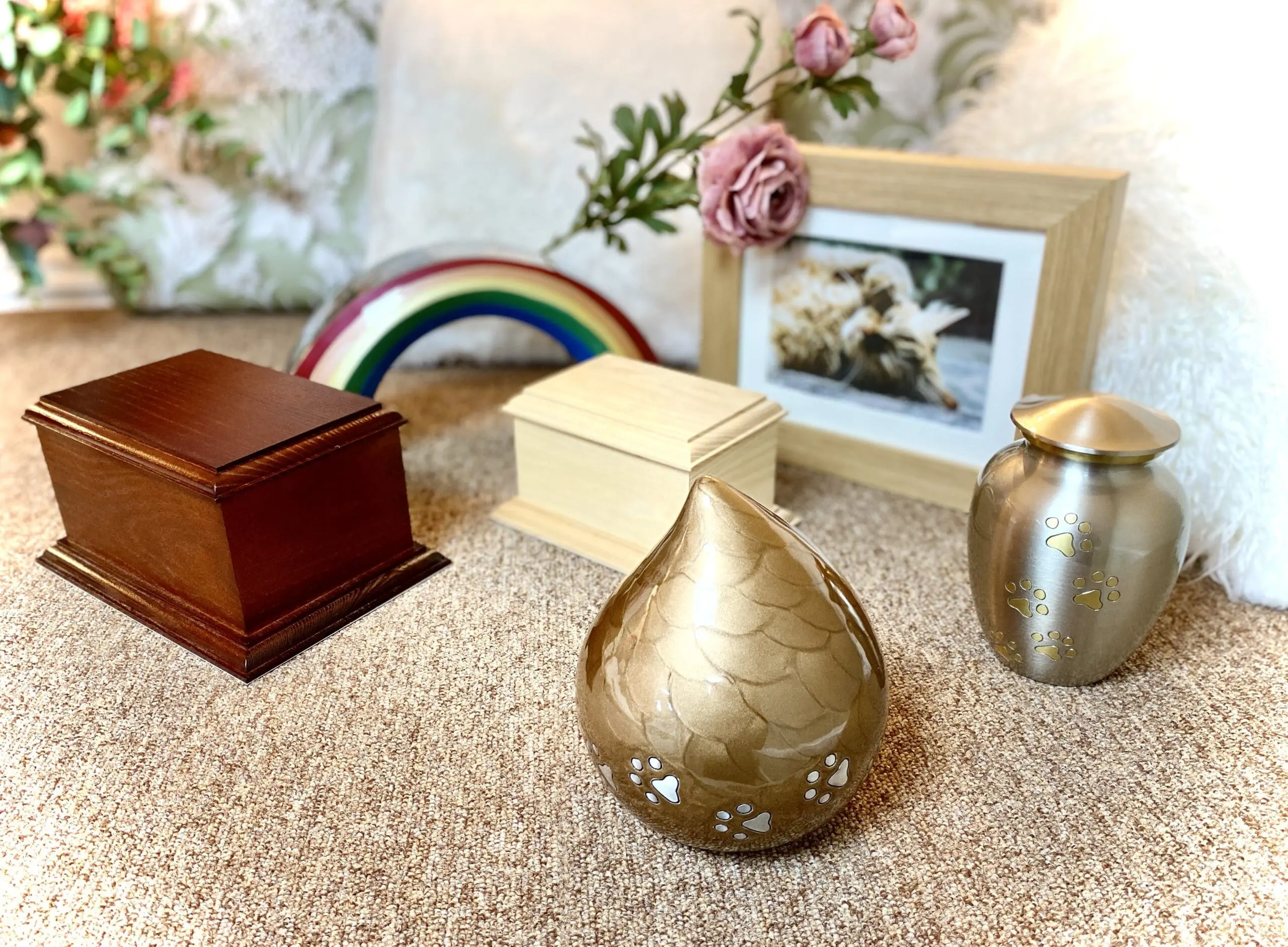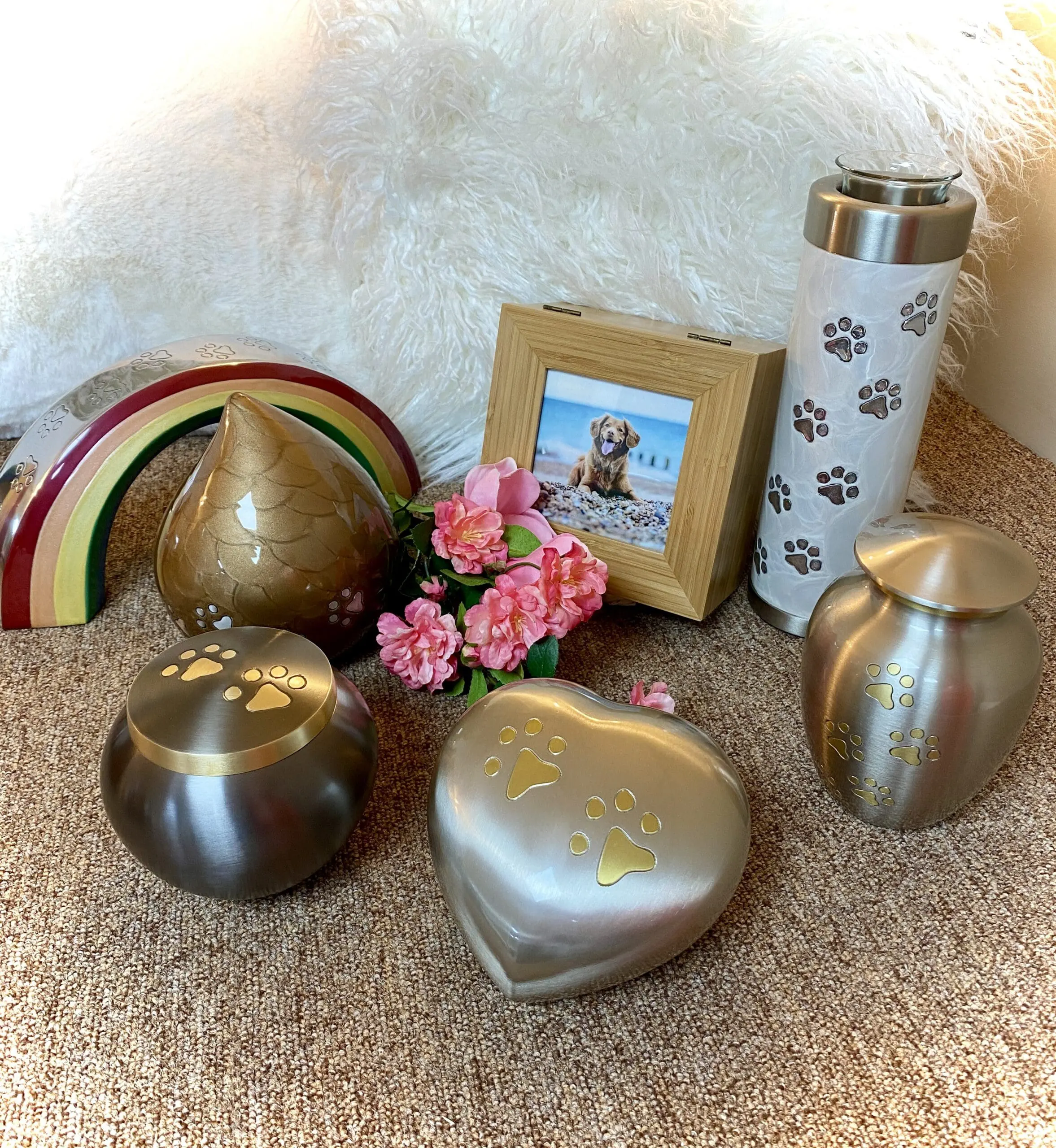 We have a selection of pet caskets, urns, memorials, markers, tributes and